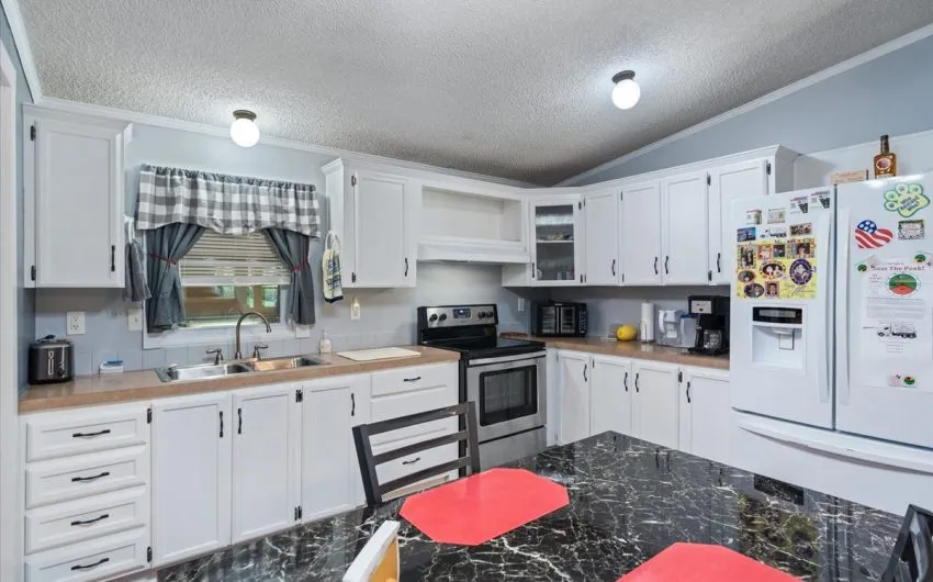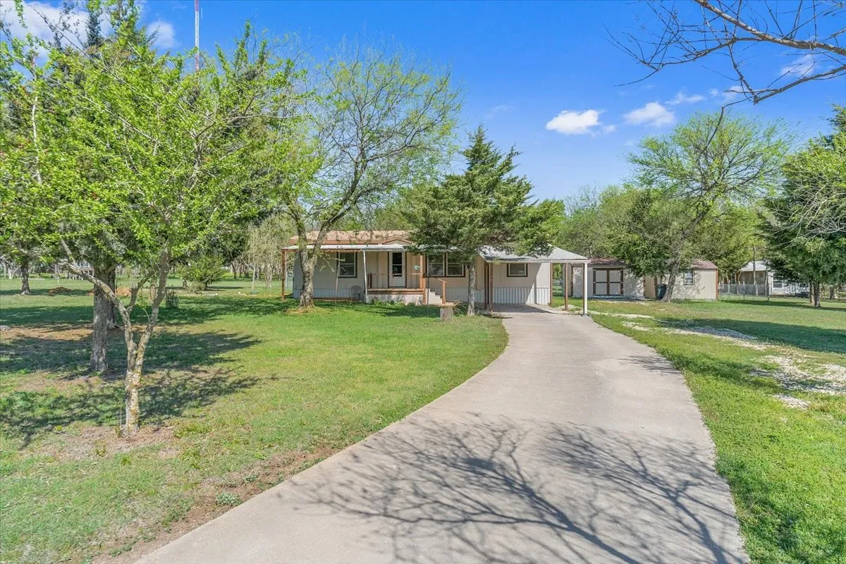 SOLD This immaculate property has 1.5 acres located just off I-35 and FM 934. This doublewide has 1232 sq. feet, 3 bedrooms, 2 baths, and central heat and air. The homeowner has taken very good care of the property. Roof was replaced in 2016. Property has a chain linked fenced in backyard and 2 nice storage buildings. 1 car metal carport. Concrete driveway and gravel drive for additional parking. Master bathroom as double vanity sinks and walk in shower. There is a shower/tub combo in the other full bathroom. The additional sunroom is a bonus. Lots of variety of trees.