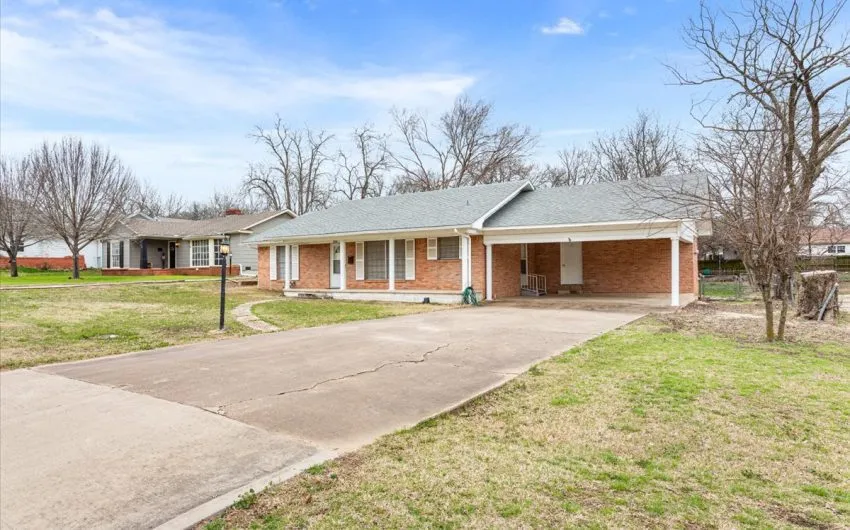 SOLD. New on the market is this cute two-bedroom, two-bathroom brick home designed for easy and simple living. With 1,510 square feet, this residence offers a seamless blend of style and functionality. The wood vinyl flooring throughout the house with tile in bathrooms and linoleum only in utility room. The kitchen features a dishwasher, lot of cabinets, and a water line hookup for the fridge. The range is electric, but the water heater and central heat are natural gas. The spacious laundry room comes complete with built-in features for added convenience. The layout from the kitchen into the living room and dining area keeps the space open. There’s an attached carport to get your vehicle out of the weather and give you access to the laundry room or the kitchen. The backyard provides a perfect spot for relaxation or play, large back covered patio, all enclosed by a secure chain-linked fence and shade. Don’t miss the chance to make this exceptional house your new home. Contact us today to learn more or to schedule a viewing!
