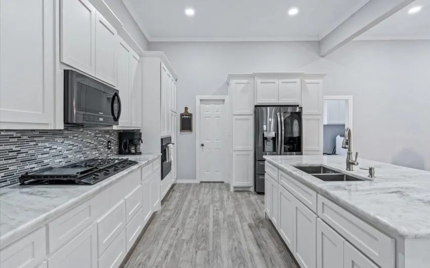 SOLD This 2327 sq. foot home that was built in 1945, has been completely remodeled. It has the charm of that era but has all the modern conveniences of 2022. As you walk up to the front porch and open the front door, first thing you notice is the open floor plan and the 12 foot ceilings. Color scheme is whites and grays for that updated feel. Laminate flooring throughout, no carpet. As you walk past the living room, you walk into the kitchen and dining area. Kitchen has a gas stovetop and new cabinetry, island with sink and dishwasher, but electric built in oven. All the bedrooms are large, especially the master. There is currently a king sized bed and dresser with room to spare. Walk in master closet. En suite bathroom has a tub, walk in shower, and double vanity sink. The other full bathroom is a shower only. The new concrete 2 car driveway is perfect for off street parking. There is also a concrete slabe along the rear of the home for entertaining and privacy to the backyard. The vacant lot on the west side is included with this property to give you almost 1/2 an acre of land. The city has merged the two lots into one address.