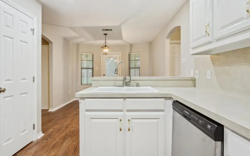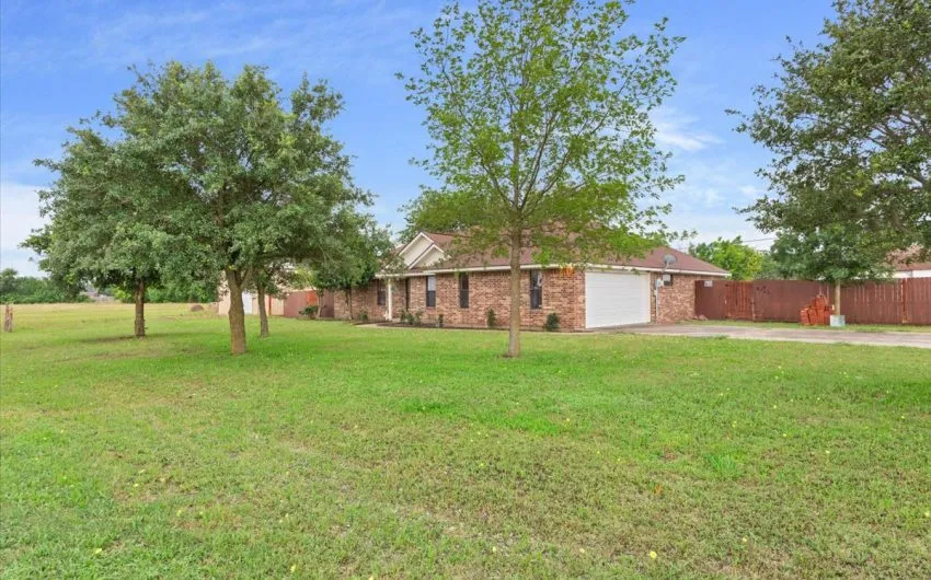 SOLD. Nestled outside the city limits of Hillsboro on 1/2 acre, this 3 bedroom, 2 bath brick home, built in 2006, is ready for a new homeowner. It’s off the main highway as you have to access it by a private drive and gate. As you walk into the home, there is an opening to the dining area to your right, or it could even be an office. The kitchen has lots of cabinets, brand new stainless steel Frigidaire appliances, a double bay cast iron sink, and pantry. The bay window in the breakfast nook looks into the back yard which is completely fenced. The primary bedroom has a walk in closet and a large ensuite bathroom which includes a separate jet tub and shower along with double vanity sink. The other two bedrooms with walk in closets are across the house with a full hall bath. The living room is spacious and has a built in TV cabinet. The home has recent updates including fresh paint. 2 Car garage. Extra large storage building in the backyard conveys.