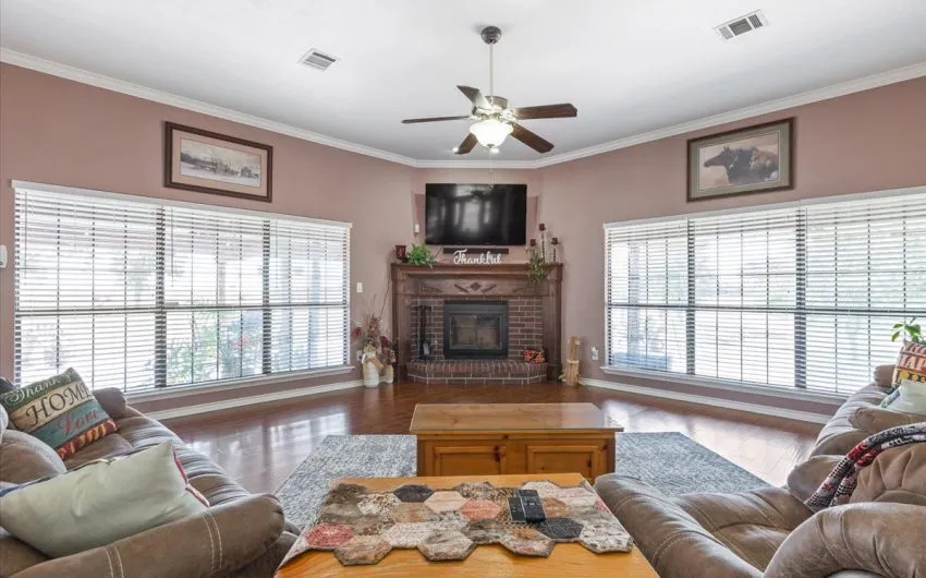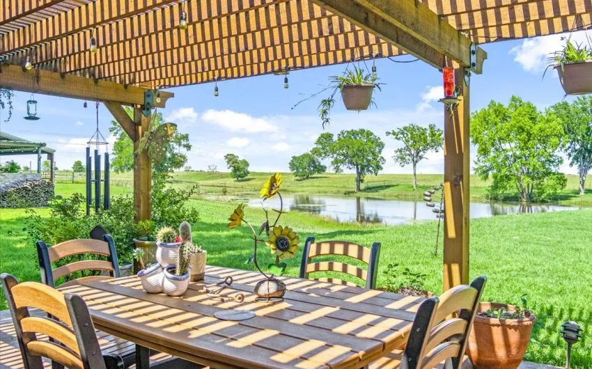 SOLD Abbott ISD, just west of I35…this property has it all. 37.773 acres of pasture for livestock, 3 stock tanks with fish, all fenced and cross fenced. Perfect for a property without out too much land but just enough. Pastures are ag exempted. This 1999 brick home has approx. 2235 sq. feet. It’s master bedroom has french doors to lead out to the covered patio. The huge walk in closet is just inside the en suite, where there are double vanity sinks, separate tub and newly tiled shower. The other two bedrooms are nice sized and there’s a hall bathroom with shower-bath combo. The living room has an open concept, woodburning fireplace, and vaulted ceilings. The kitchen has granite countertops and stainless steel appliances. Bay windows in the breakfast nook look out to the stock tank and patio with pergola. Brand new roof and AC. There is a separate dining room, big utility room, and even a bonus room that could be used for 4th bedroom or office.