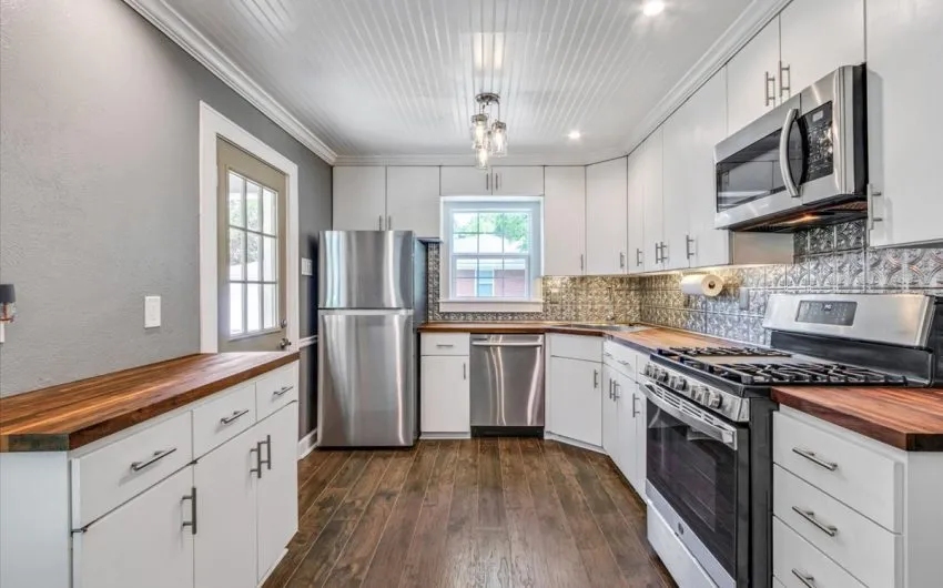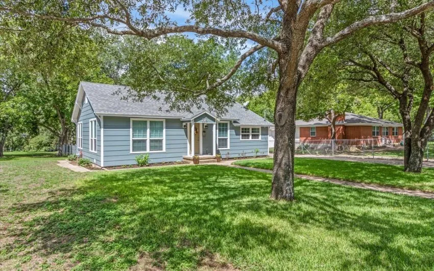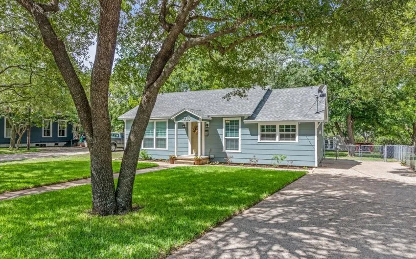 SOLD What a charmer this is and some cool West history, too…Nice and quiet residential area, this well kept 1120 sq. foot home is ready to move into, as it has been completely remodeled with all new wiring, plumbing, siding, windows, central heat & air, luxury vinyl flooring, fresh paint, and stainless steel appliances…owners are even including the fridge with the sale. It has 2 bedrooms and 1 bath. The bonus room-which could be a 3rd bedroom or office) was once used as a radio room for the American Czech Hour, so there are lots of outlets and a built in bookcase. Nicely landscaped with St. Augustine grass. Sprinkler system. Huge fenced in backyard with mature pecan trees along with a new 255 sq. foot storage building. There’s also a smaller building for more storage and raised flower beds. Off street parking.