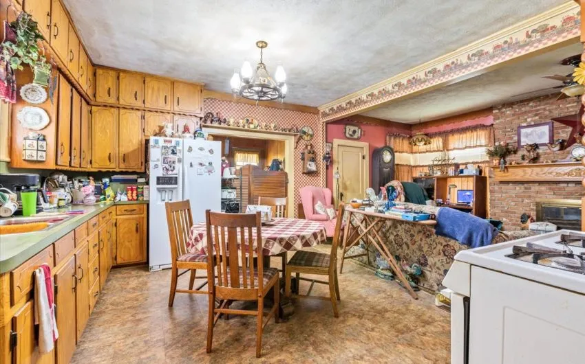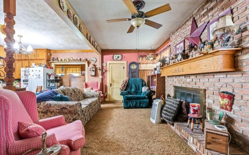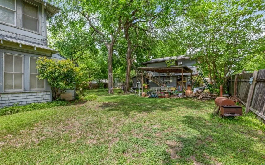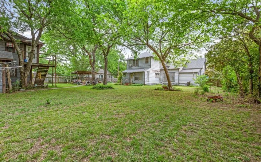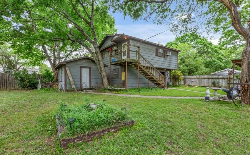 SOLD This adorable 2 story home has 2288 sq. feet and is a 4 bedroom, 2 possibly 3 bath, with so much charm. The home has a formal living room with a brick gas insert fireplace, high ceilings with wooden beams, antique light fixture, and a huge pocket door going into the formal dining room with wainscoting panels. There are 2 bedrooms downstairs and a bath with a tub/shower combo. As you walk into the kitchen, you notice the birchwood built in cabinets and gas stove on a brick slab. This opens into the little den area for coziness with the wood burning fireplace. Upstairs, there are 2 more large bedrooms and windows on the south and east side. There’s even a little bonus room that could be used for another bath. The mud room is on the back portion of the house going to the huge, shaded, fenced in backyard. There is even a goldfish pond along with a relaxing patio area in the backyard. The garage has 2 garage doors along with an apartment with 780 sq. feet. It has 2 bedrooms and 1 bath. Call for details..